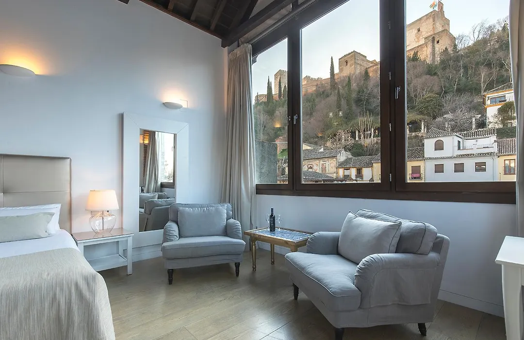 Este encantador hotel boutique se encuentra en el barrio del Albaicín, rodeado de calles empedradas y vistas panorámicas. Sus habitaciones elegantes y acogedoras están equipadas con jacuzzi, proporcionando un espacio de relajación absoluta. Además, el hotel ofrece un desayuno buffet diario y un personal atento que hará que tu estancia sea inolvidable.